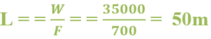 Une force d’intensité F = 700N est exercée par un cheval sur une charrue. Sachant qu’elle a effectué un travail de 35 KJ, calcule la longueur du trajet.