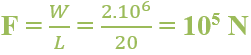Lorsque le point d’application d’une force se déplace de 20m sur sa droite d’action, le travail effectué est alors W=2.10 6J. Quelle est l’intensité de cette force ?