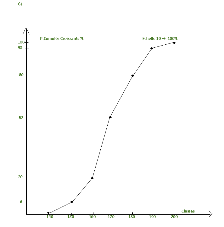 6) Trace la courbe cumulative des pourcentages cumulés croissants.