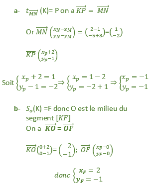 a)Trouver les coordonnées de P image de K par la translation de vecteur ;