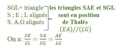 QUESTION-18-ACTIVITÉS GÉOMETRIQUES : THÈORÈME DE THALES QUESTION 18 On donne:SE = 5cm ; SL =12cm; GL= 9cm Calcule AE QUESTION-18-ACTIVITÉS GÉOMETRIQUES : THÈORÈME DE THALES On donne: SE = 5cm ; SL =12cm; GL= 9cm Calcule AE RETOUR AUX QUESTIONS Afficher la réponse Retour aux Questions Retour aux Chapitres Retour aux Matières
