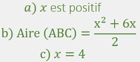 c) Calcule x lorsque l’aire du triangle ABC est de 20 cm².