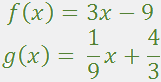 Déterminer les expressions littérales des applications affines f et g dont les droites (représentations graphiques) respectives :
