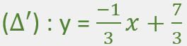 QUESTION-25-Repérage dans le plan QUESTION 25 Soit une droite (∆) d’équation : y = 3x + 2.Donne une équation de la droitepassant par le pointA (-2 ; 3) et perpendiculaire à la droite (∆). QUESTION-25-Repérage dans le plan Soit une droite (∆) d’équation : y = 3x + 2. Donne une équation de la droite passant par le point A (-2 ; 3) et perpendiculaire à la droite (∆). RETOUR AUX QUESTIONS Afficher la réponse Retour aux Questions Retour aux Chapitres Retour aux Matières