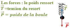 Une boule de masse (m) suspendue à un ressort est en équilibre. Représente et nomme les forces qui s’exercent sur la boule sans faire référence à une échelle.