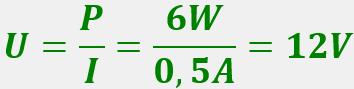 Une lampe de puissance nominale 6W est traversée par un courant d’intensité 0,5A. Calculez la tension à ses bornes.