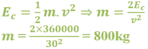 L’énergie cinétique d’un véhicule roulant à la vitesse de 30m/s est Ec =360000J.
