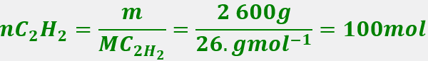 Pour souder une porte en fer, un menuisier utilise une masse m=2,6kg d’acétylène.