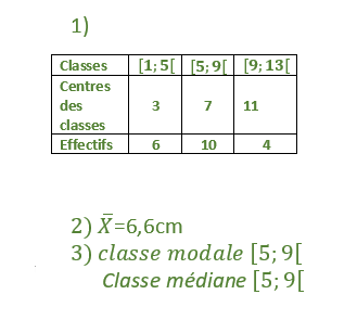 1) Déterminer des classes de même amplitude égale à 4cm2) Calculer les centres des classes et la moyenne de la série classée;